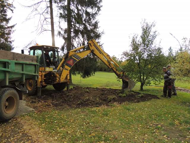 Úpravy na školní zahradě, nový herní prvek, odstranění nebezpečných kamenů, pařezů a zasypání jezírka.