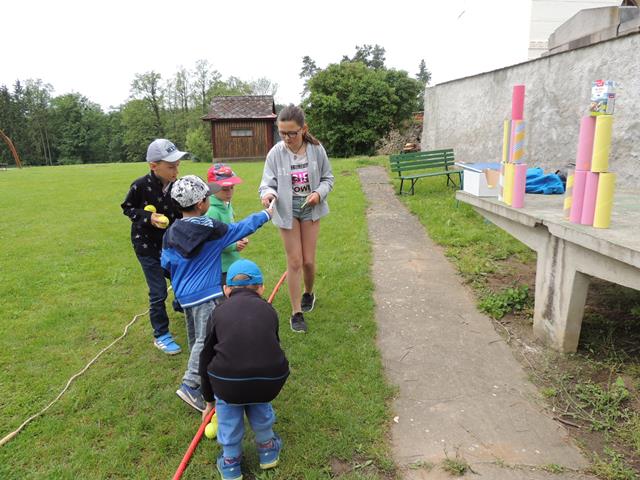 V pátek 31. 5. bylo téměř celé dopoledne věnováno dětským hrám a soutěžím na školní zahradě. Naši nejstarší žáci pomohli připravit několik stanovišť, na kterých si své síly zábavnou formou poměřily nejprve děti z mateřinky a mladší školní děti. Celou trasu pak absolvovali úplně všichni žáci, za což byli na závěr odměněni sladkostmi.