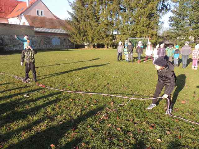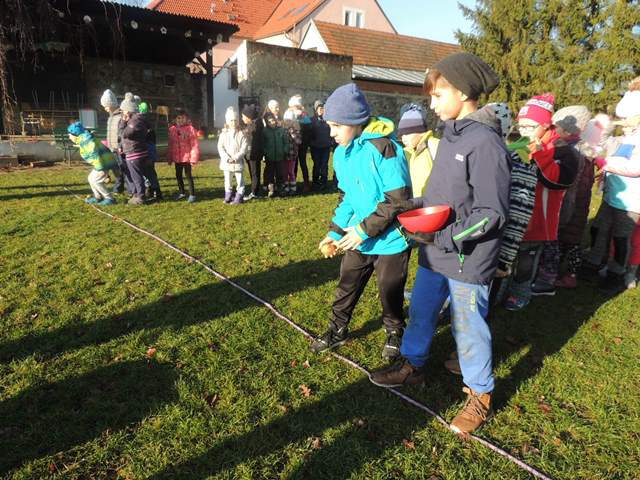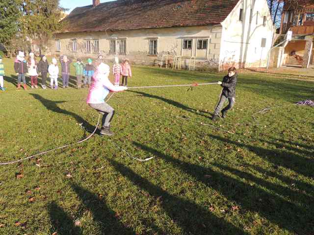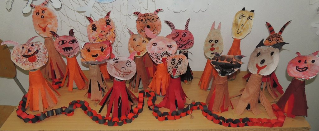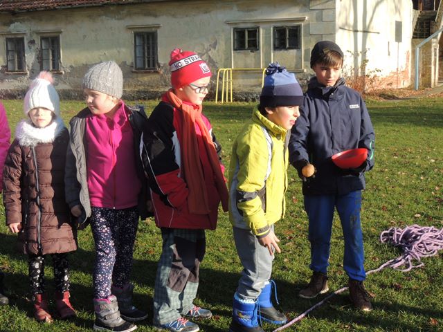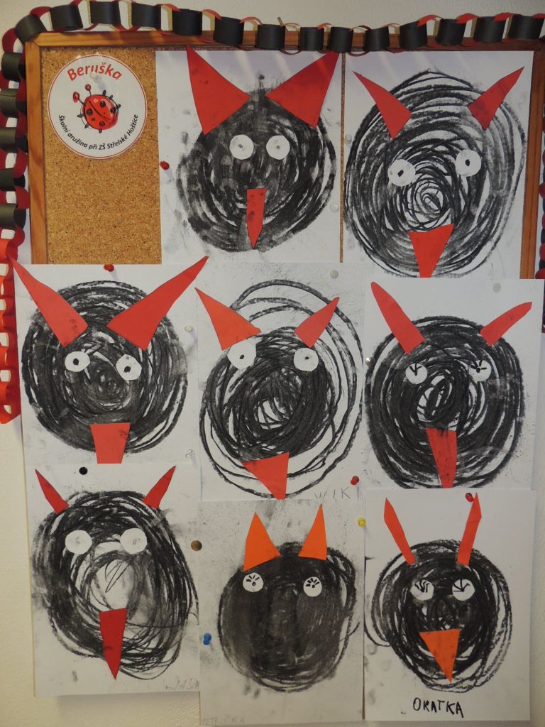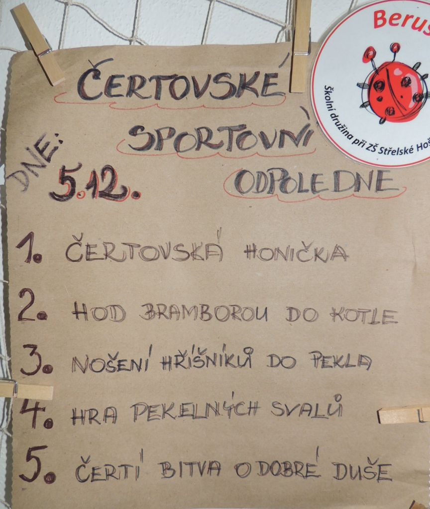 Na odpoledne připravily paní vychovatelky ze školní družiny „Čertovské sportovní odpoledne“, kde si děti zasoutěžily v netradičních čertovských disciplínách - čertovská honička, hod bramborou do kotle, nošení hříšníků do pekla, hra pekelných svalů nebo čertí bitva o dobré duše. Odměnou jim byl originální vzpomínkový list a sladkosti od Mikuláše.