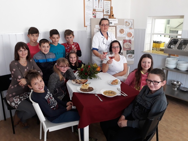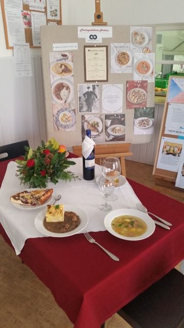 Paralelně s tímto obědem byla na obecním úřadě připravena výstava s tématem kuchyně našich prababiček, na které pracovníci školy a jídelny spolu s panem starostou sehráli dobovou scénku.