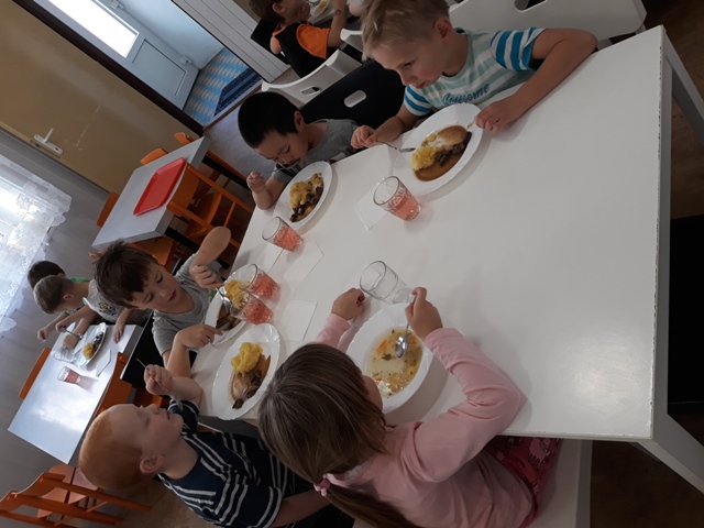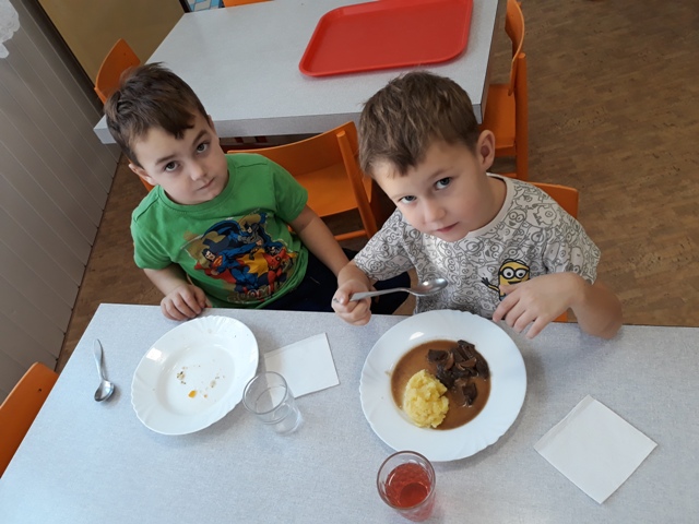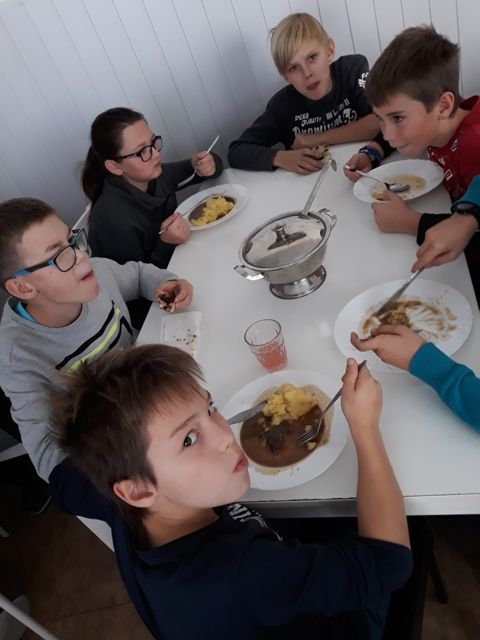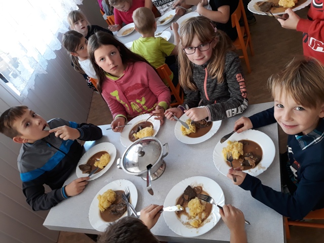 Náš 100team "Hoštická střela" společně s pracovnicemi naší školní jídelny sestavili slavnostní menu z jídel, která se jedla již před 100 lety a společně jídla také připravili. Děti z teamu nejvíce pomáhaly při pečení tradičního švestkového koláče. Ostatní žáci školy i školky měli pokrmy z tohoto menu k jídlu při normálním obědě ve školní jídelně.
