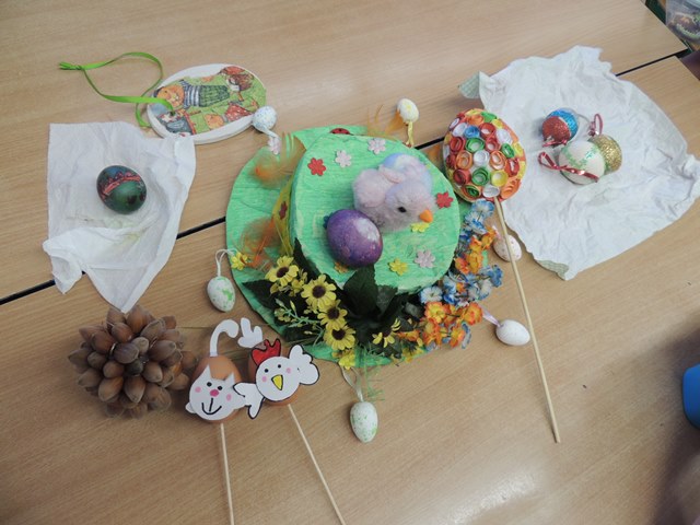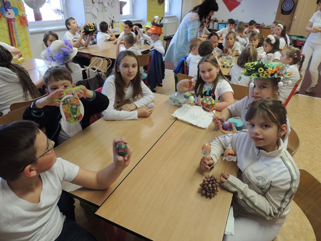 Poslední den školy před Velikonocemi jsme pro všechny žáky uspořádali tradiční soutěž o nejkrásnější velikonoční vajíčko. Kdo chtěl, mohl přijít v jarně nazdobeném klobouku.
