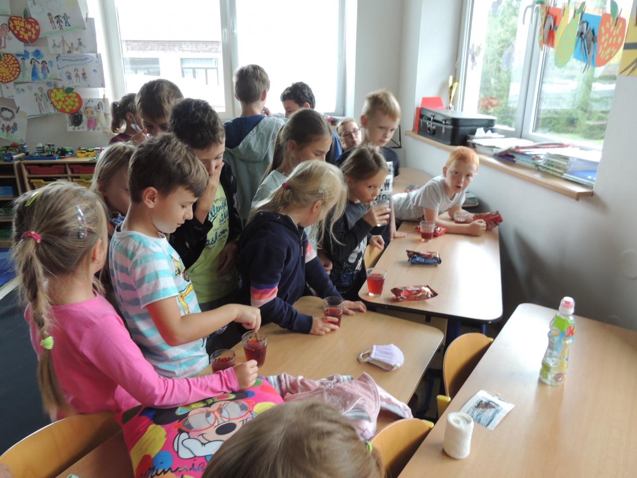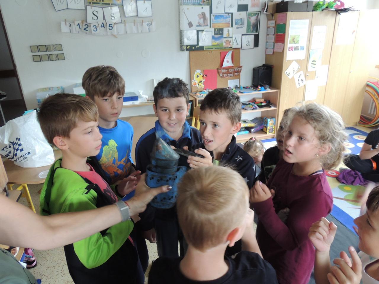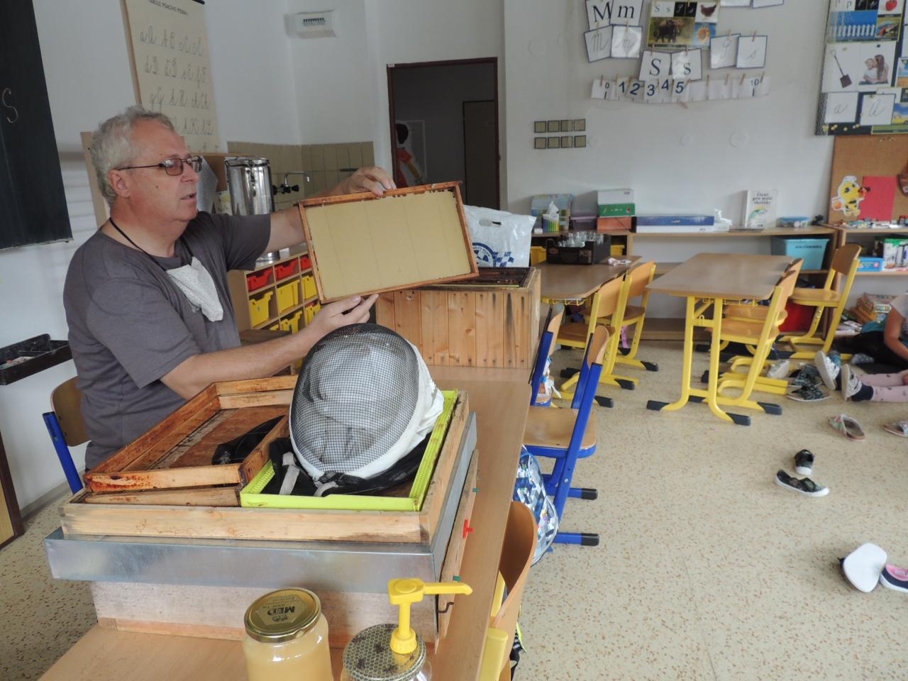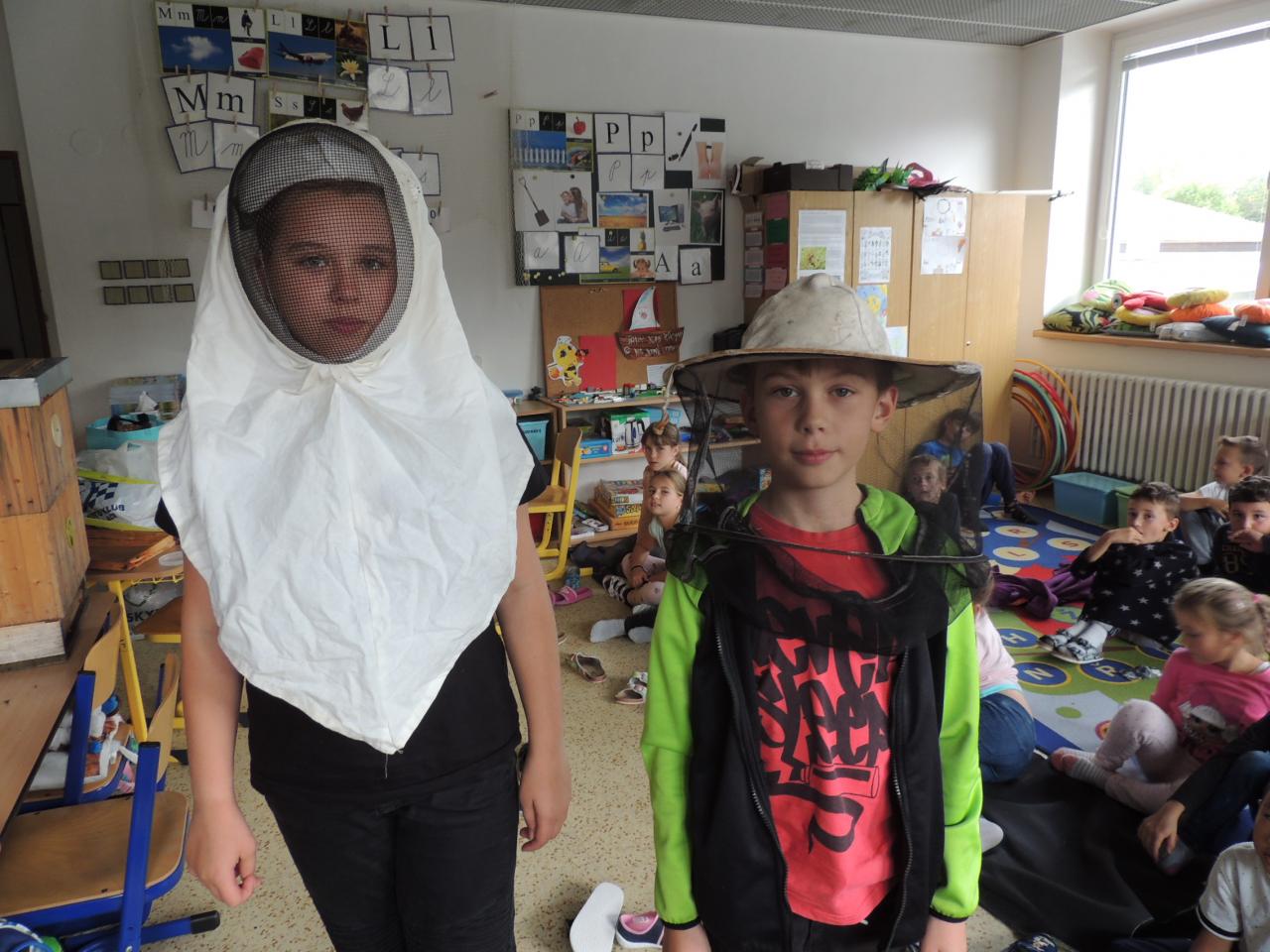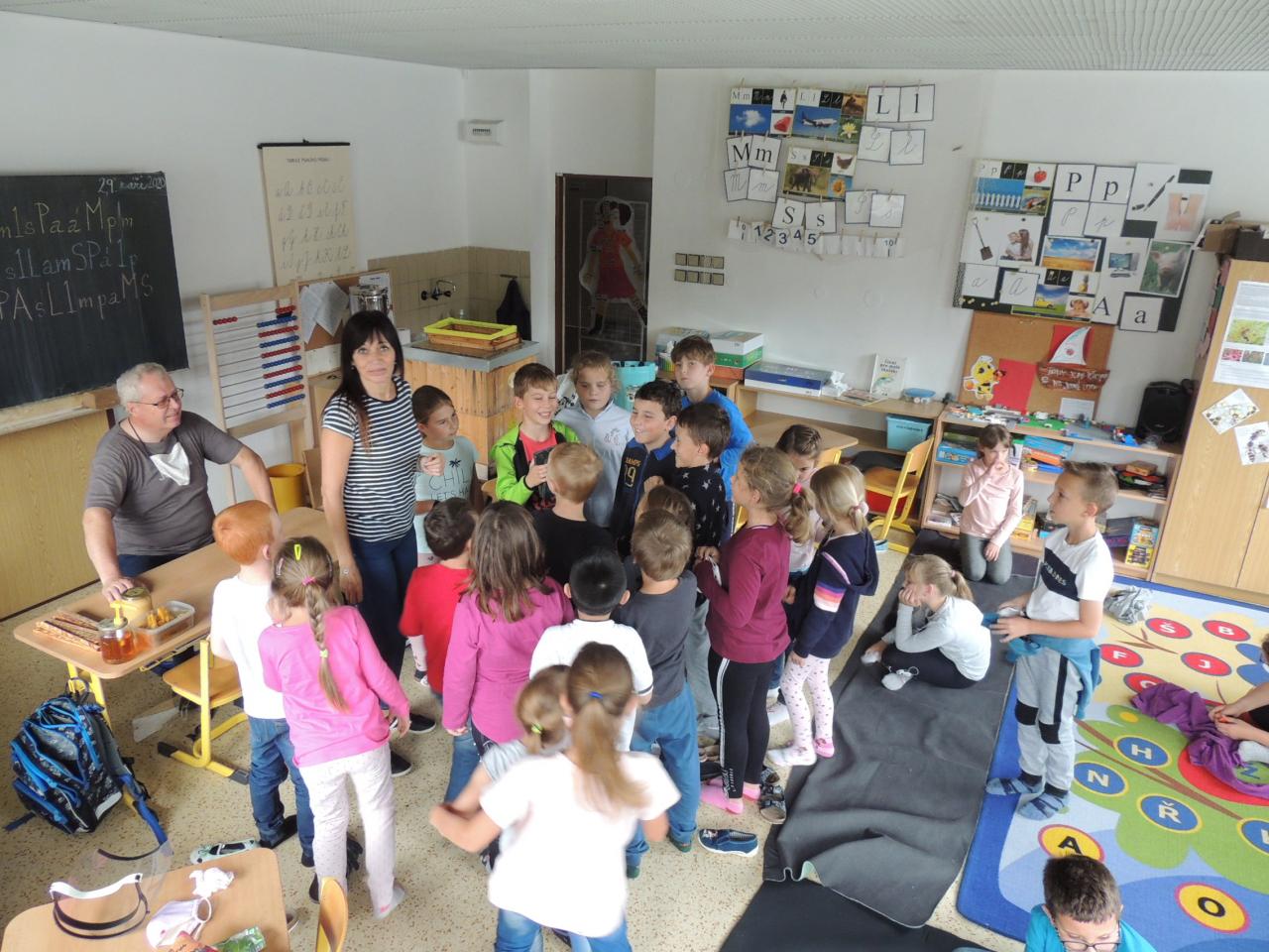 Do školy přišel dlouholetý odborník - včelař pan Ing. Milan Kodýdek, který dětem poutavě vysvětlil život včel, vznik medu i další podrobnosti kolem včelaření. Děti viděly, s čím včelař pracuje – klobouk se sítí, včelařskou kuklu a oblek, rámečky, kuřák, úl, nástavky a včelí produkty…. Seznámili se blíže se vším, co včelky produkují – propolis, mateří kašička, vosk a med, kterým jsme si osladili čaj a k němu zakousli i medový perníček. Děti měly spoustu otázek, na které jim zkušený včelař trpělivě odpovídal. Nechyběla zásadní odpověď – PROČ A JAK VČELKY TANCUJÍ…..
