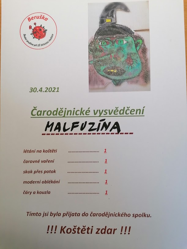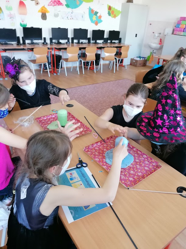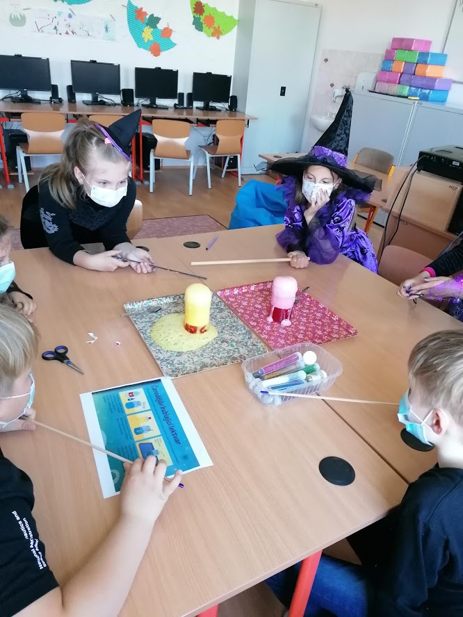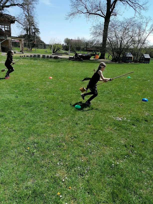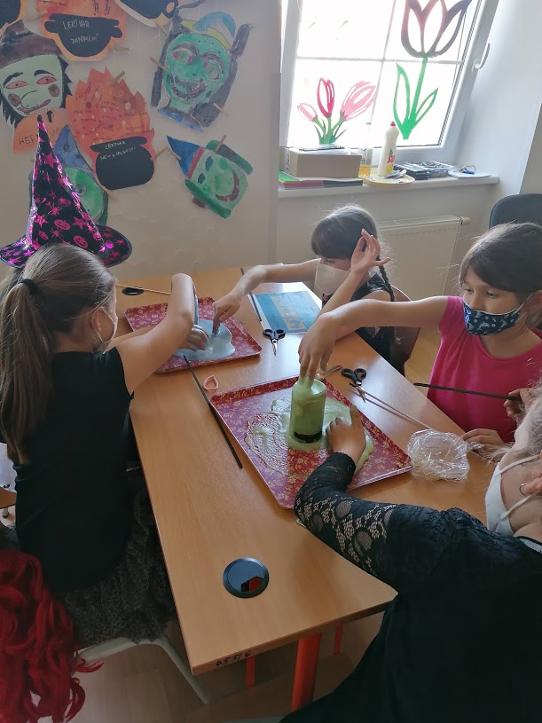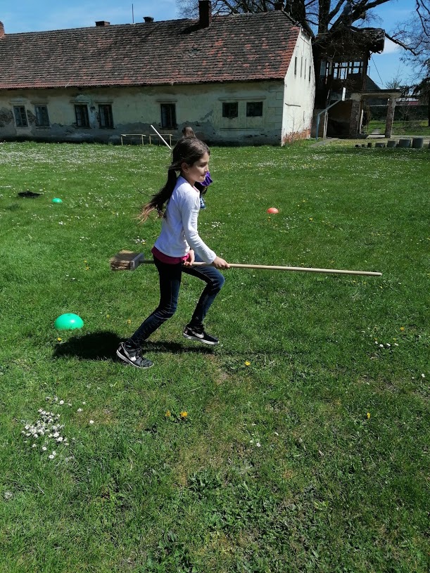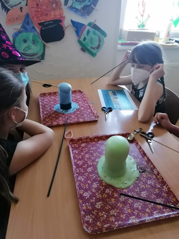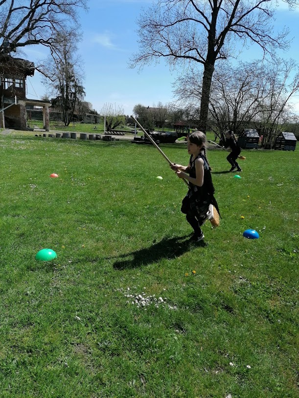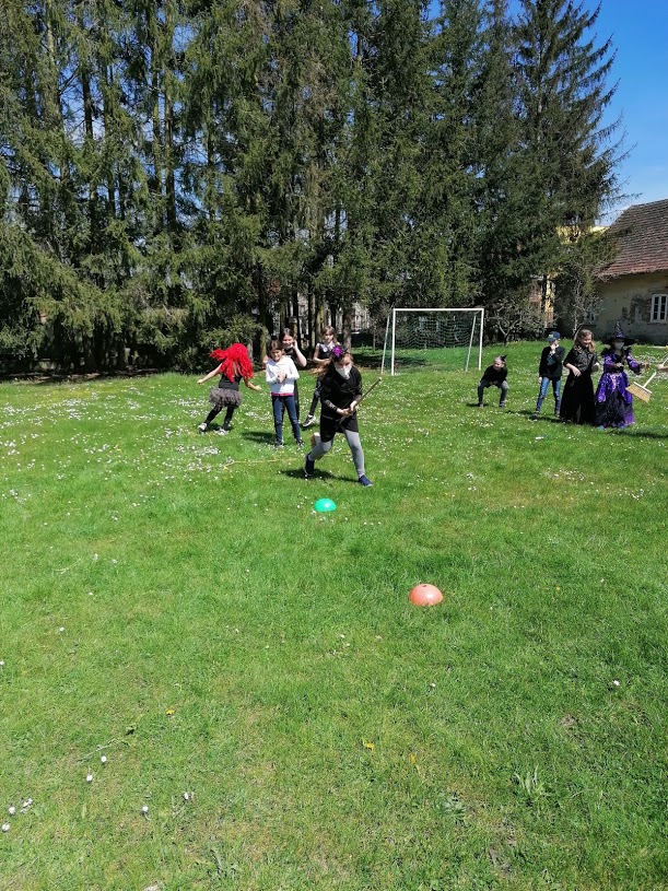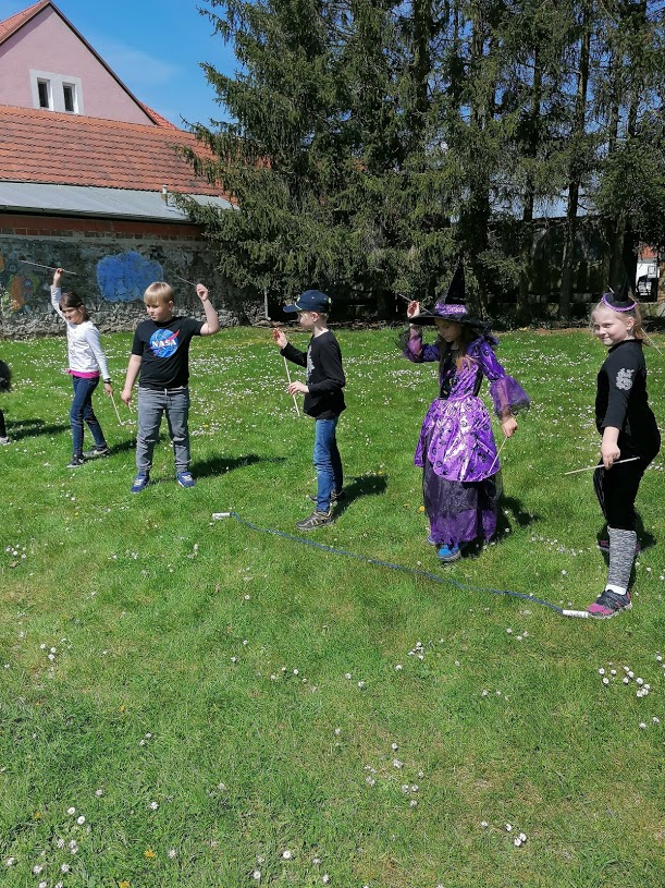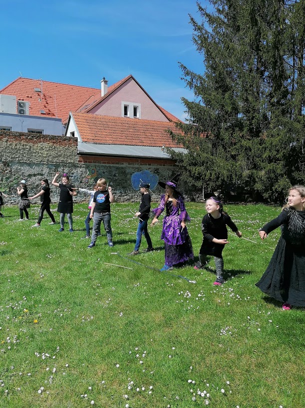 Celotýdenní čarodějnické tvoření jsme zakončili čarováním přání nad bublajícím lektvarem, čarodějky předvedly své hábity v módní přehlídce a poměřily své umění v letu na koštěti, přenášení lektvaru, hodu koštětem nebo skokem přes kameny. Vše zvládly na výbornou a obdržely Čarodějnické vysvědčení.