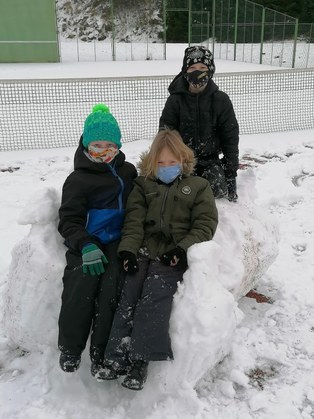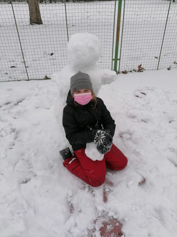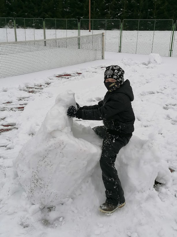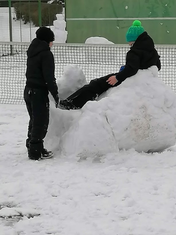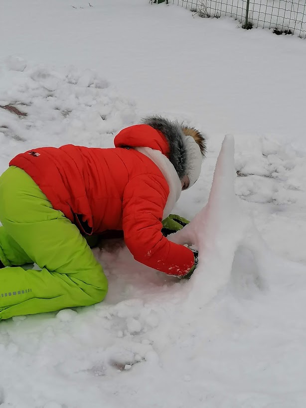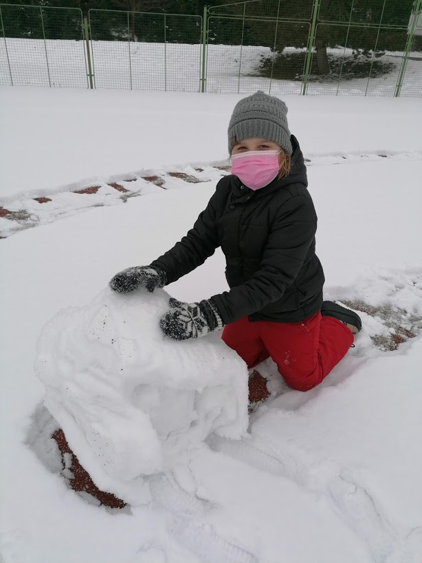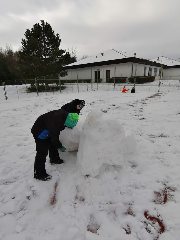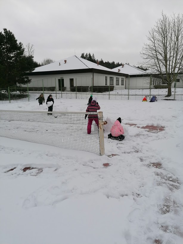 Poslední sněhovou nadílku jsme si ještě patřičně užili - rolovali jsme koberce, stavěli kuchyňky a vyrostla nám dokonce i "Eiffelovka". Dny zimě holdovaly a my jsme při každodenním pobytu venku pozorovali krásy zimy, mrazivé kresby, krápníky a naváté bílé závěje. Teď se už těšíme na jaro☼