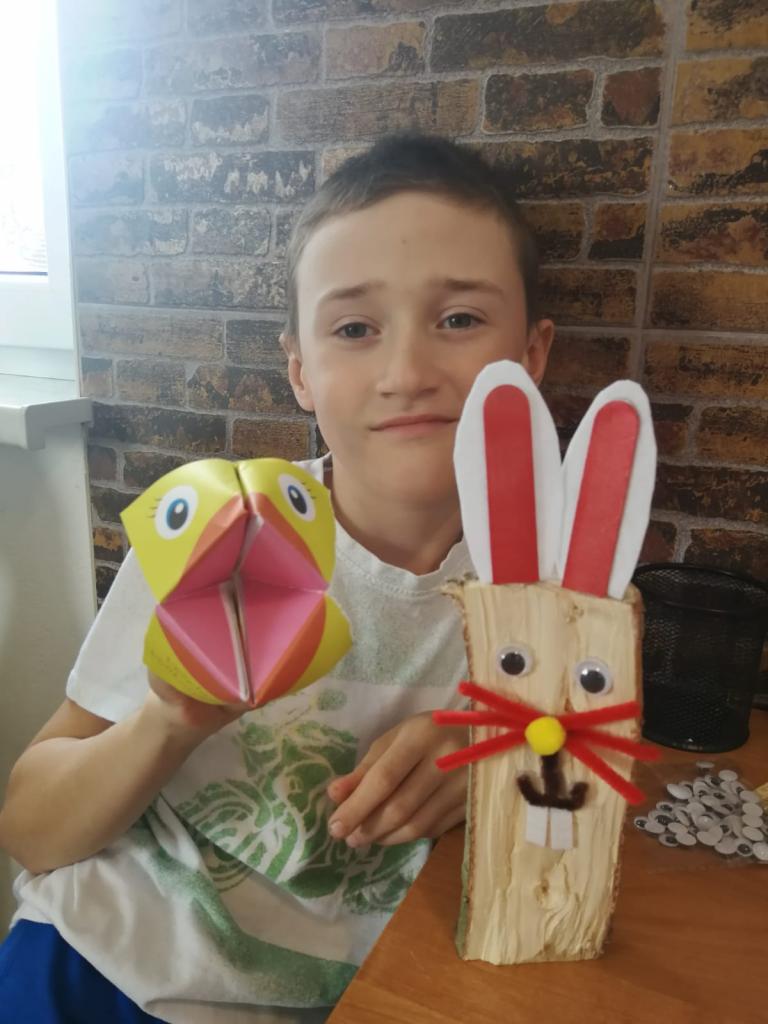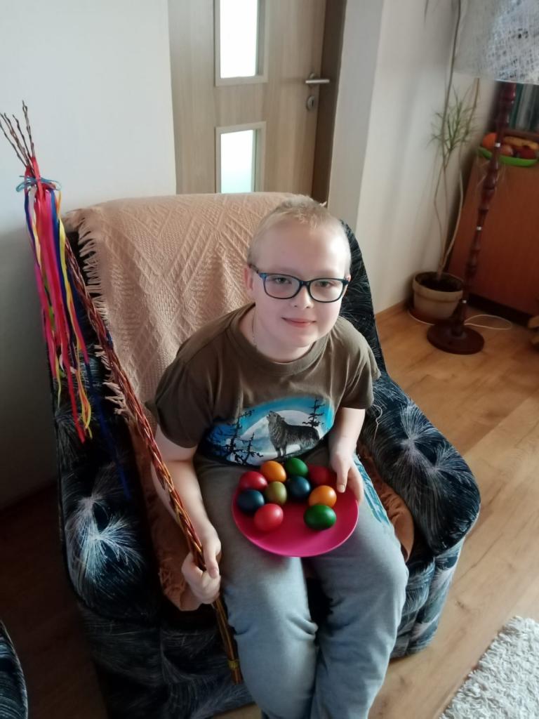 Čtvrťáci a páťáci k Velikonocům doma vytvářeli výzdobu, zdobili velikonoční vajíčka a také se podíleli na velikonočním pečení.