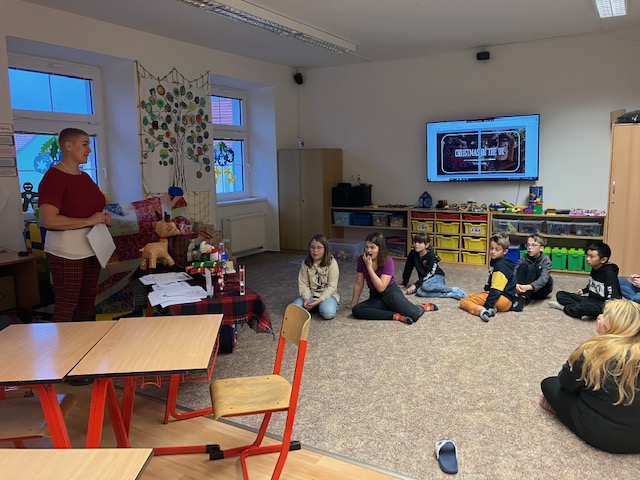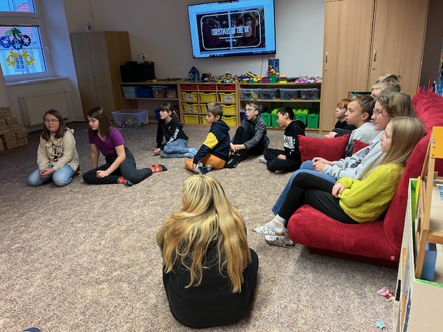 Pravou britskou vánoční atmosféru jsme mohli zažít ve středu 20. 12. na krásné besedě o vánočních tradicích ve Velké Británii. Děti si společně zazpívaly anglické koledy, dověděly se spoustu informací a byly dokonce obdarovány - roli Santa Clause převzala malá Emily, dcerka paní McCourt. Děkujeme!!