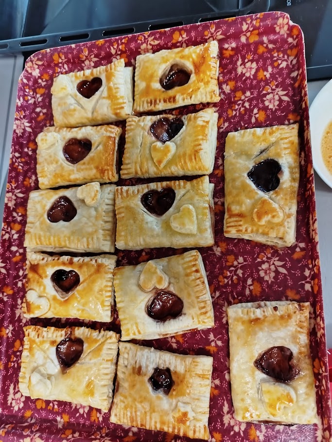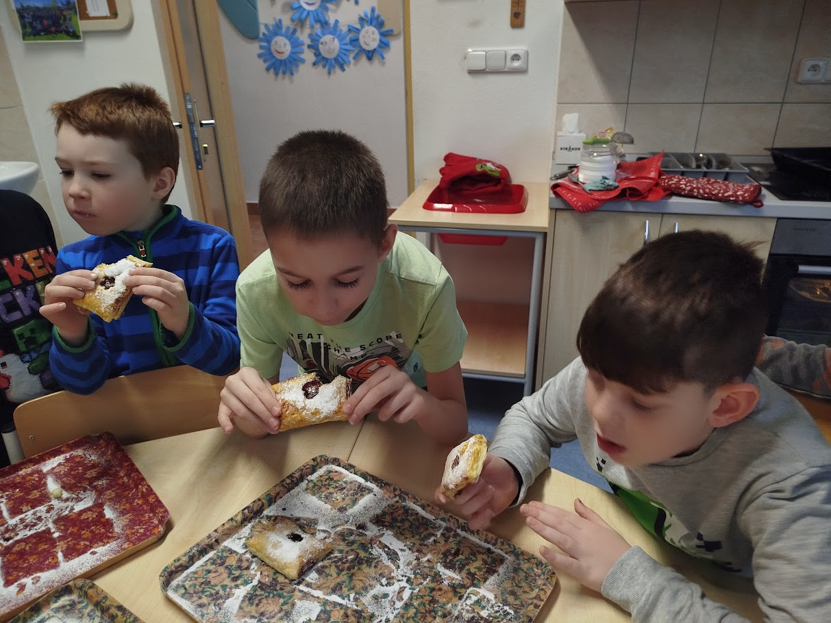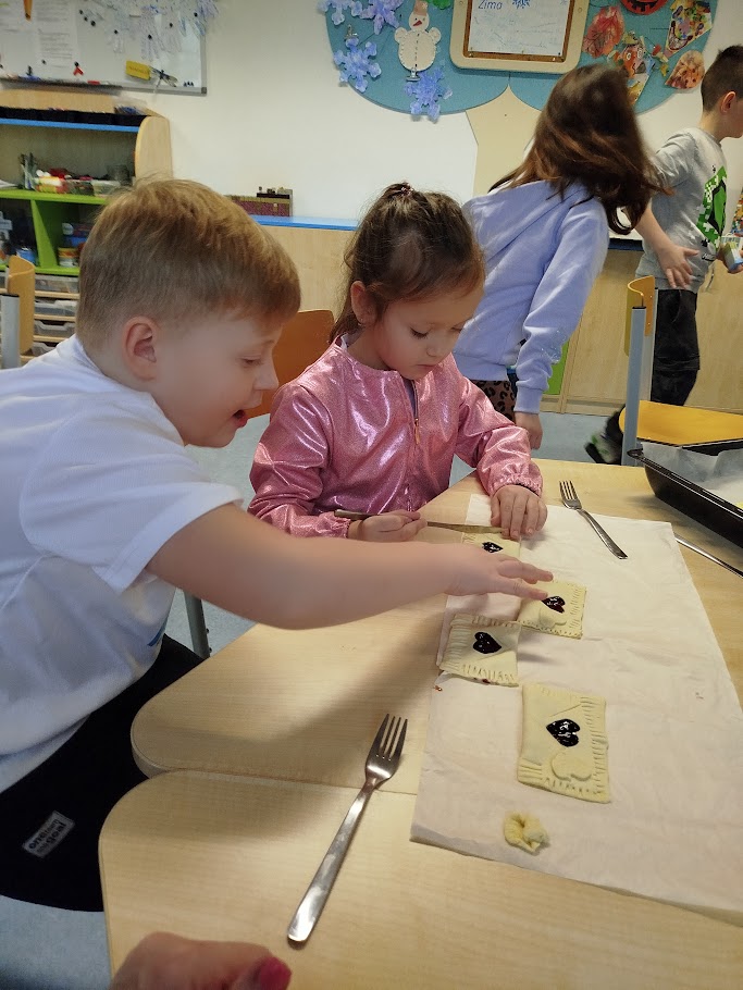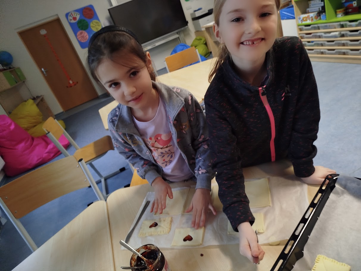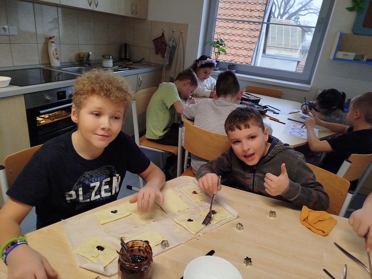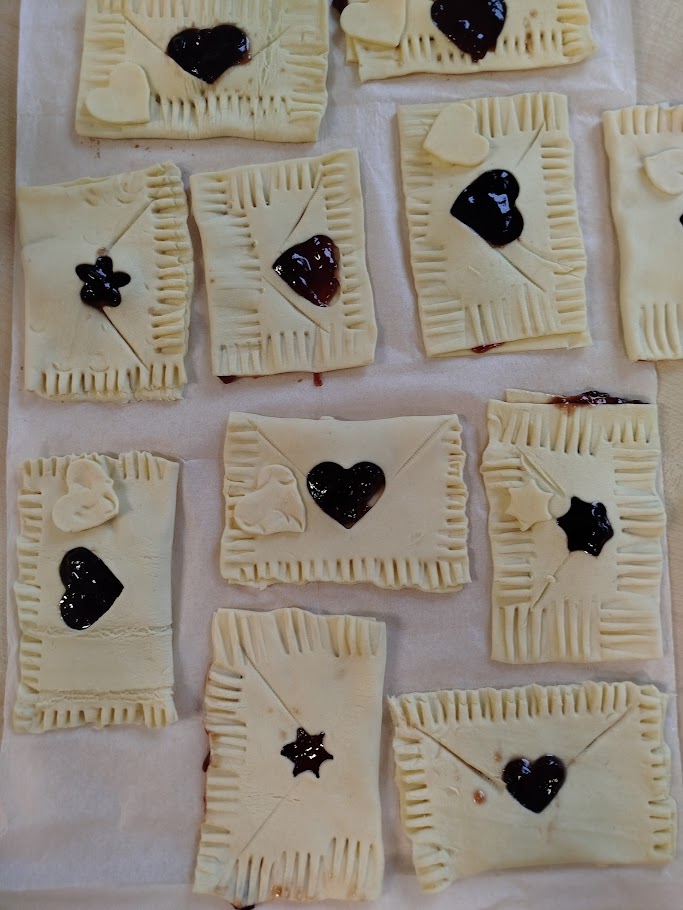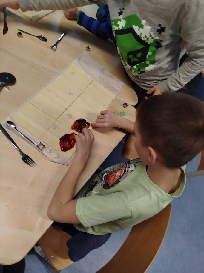 Při Valentýnském pečení si děti s chutí připravovaly listové obálky plněné marmeládou. Práce jim šla pěkně od ruky. Nechyběl smích, spolupráce ani malé ochutnávací „kontroly kvality“. Hotové valentýnské obálky byly sladkým důkazem, že když se peče s láskou, radost je dvojnásobná.