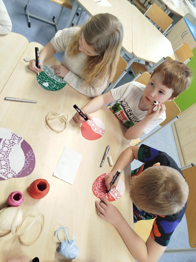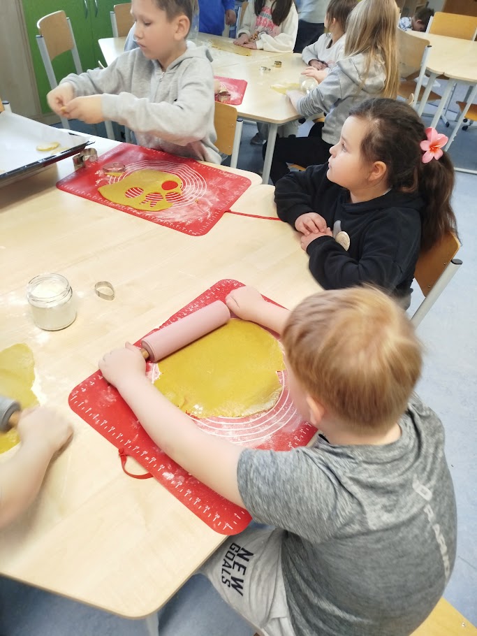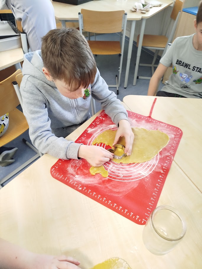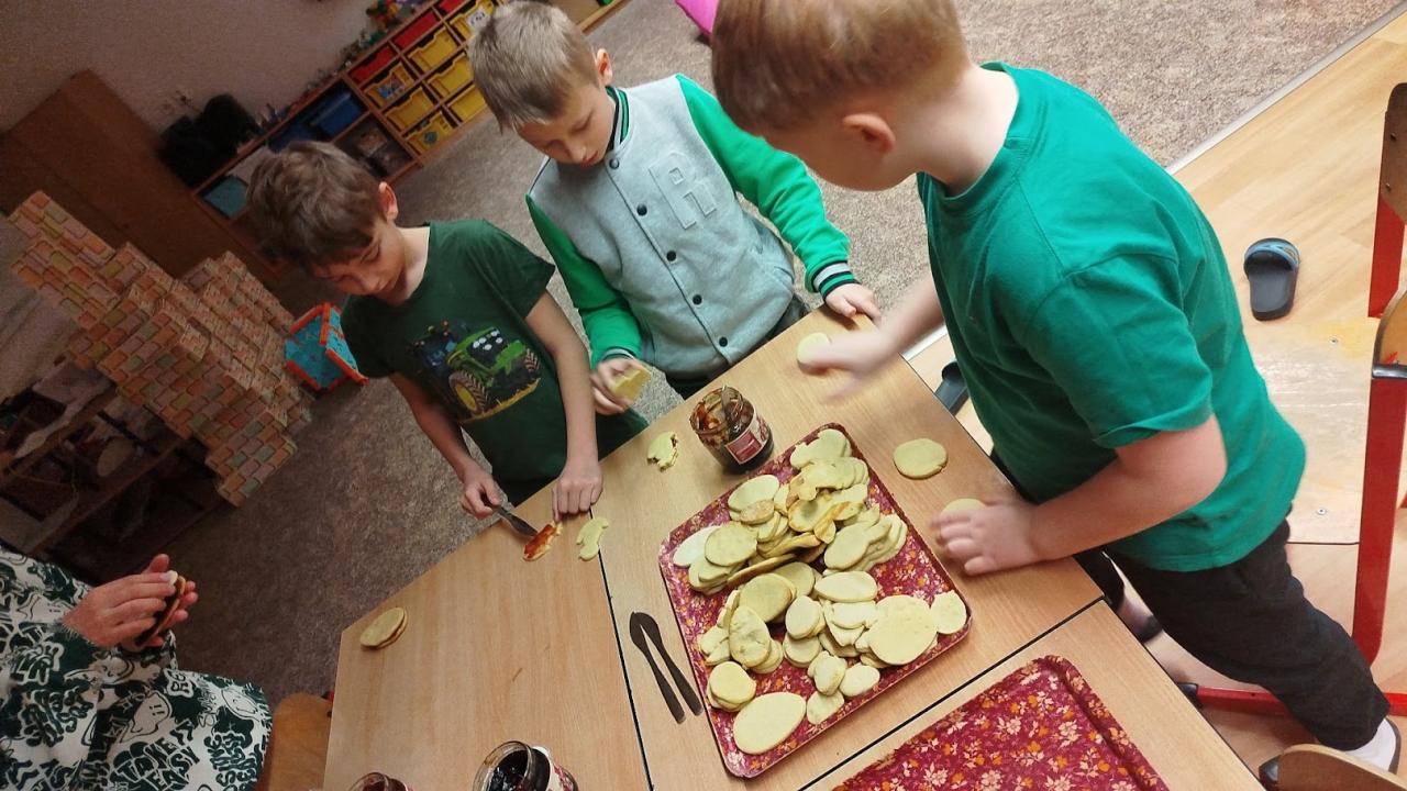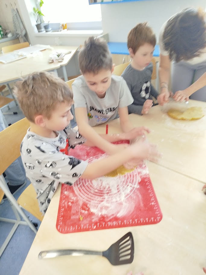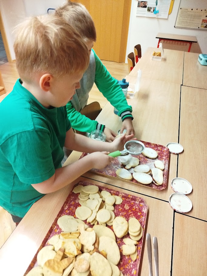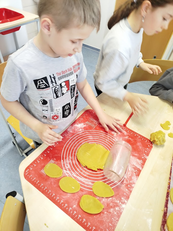 Při velikonočním pečení z lineckého těsta jsme si připomněli tradice Velikonoc. Vykrajovali jsme tvary vajíček, slepiček a zajíčků a po upečení je slepovaly marmeládou. Práce nás velmi bavila a procvičili jsme si zručnost i trpělivost. Provázela nás příjemná atmosféra a vůně čerstvého cukroví.